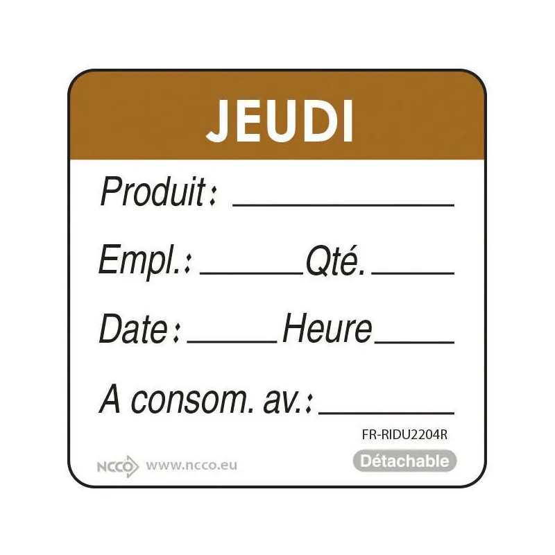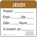 rouleau de 500 étiquettes DLC jour de la semaine autocollantes 5x5 cm jeudi marron