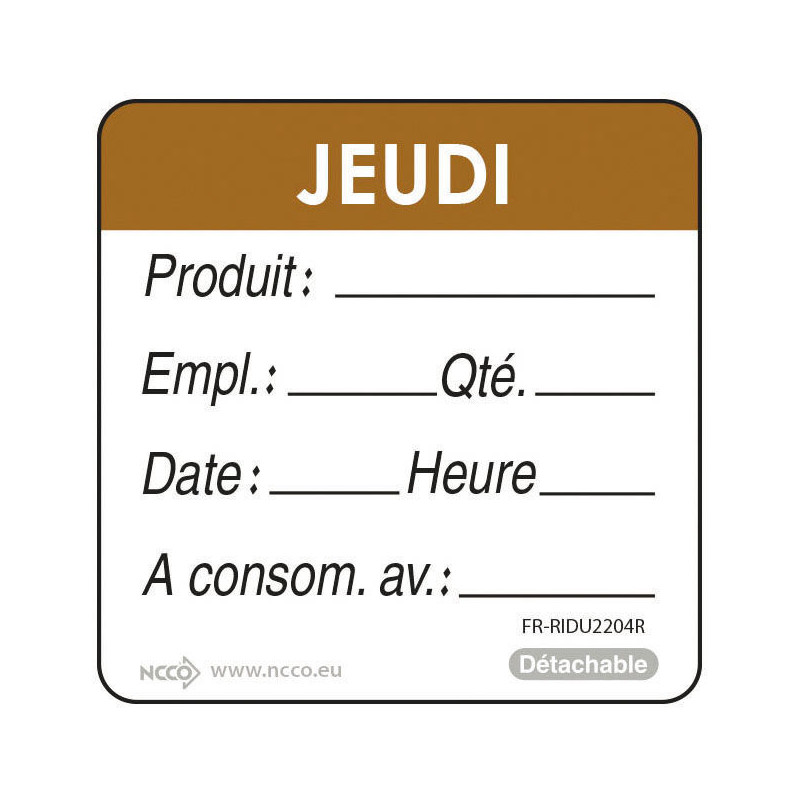 - Etiquettes disponibles exclusivement en français