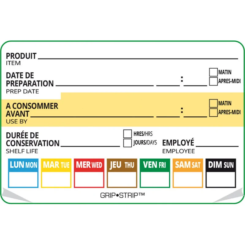 rouleau de 500 étiquettes DLC 7 jours de la semaine autocollantes 7.5x5 cm