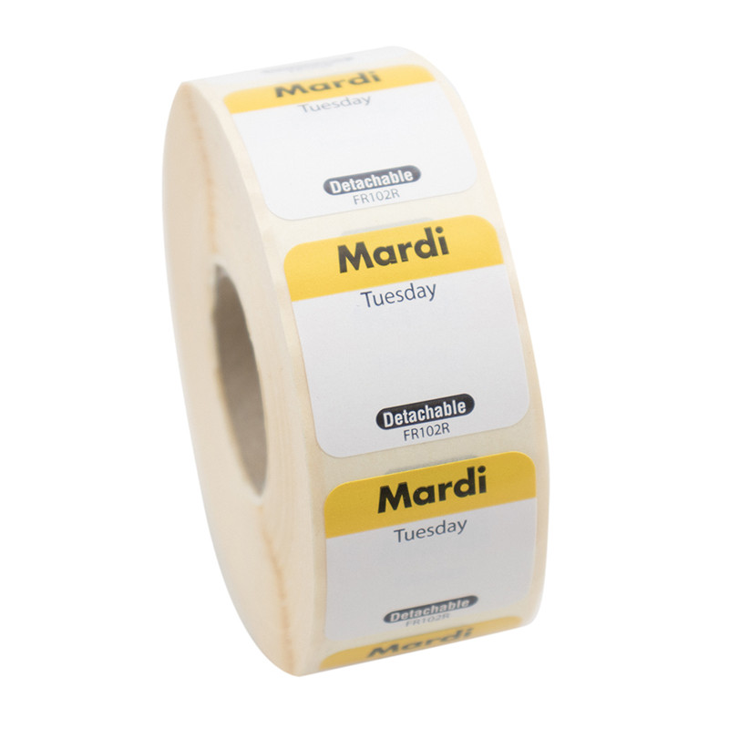 rouleaux de 1000 étiquettes DLC jour de la semaine autocollantes 2,5x2,5 cm