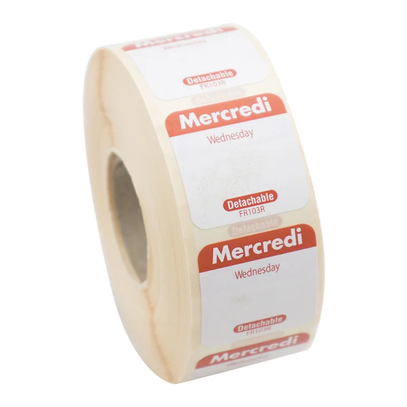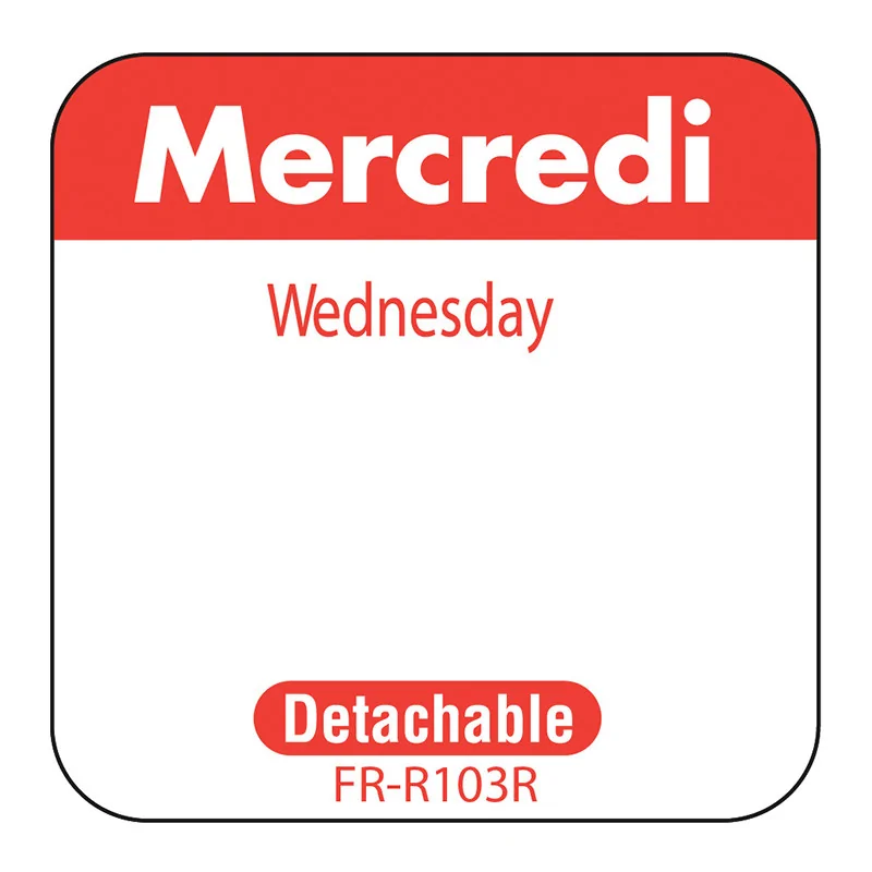 rouleau de 1000 étiquettes dlc jour de la semaine autocollantes 2,5x2,5 cm mercredi rouge