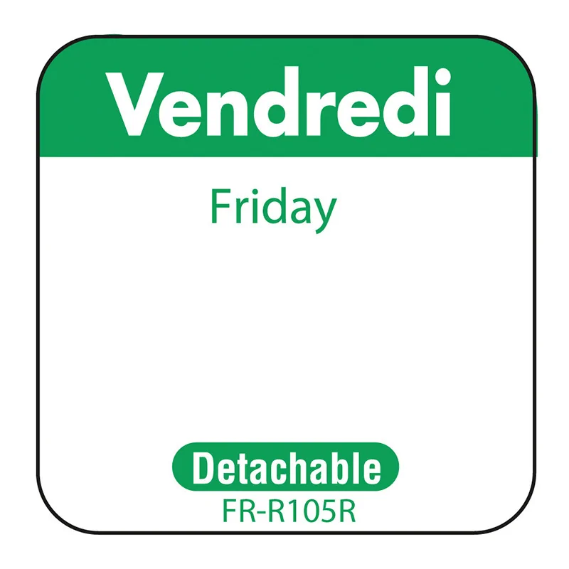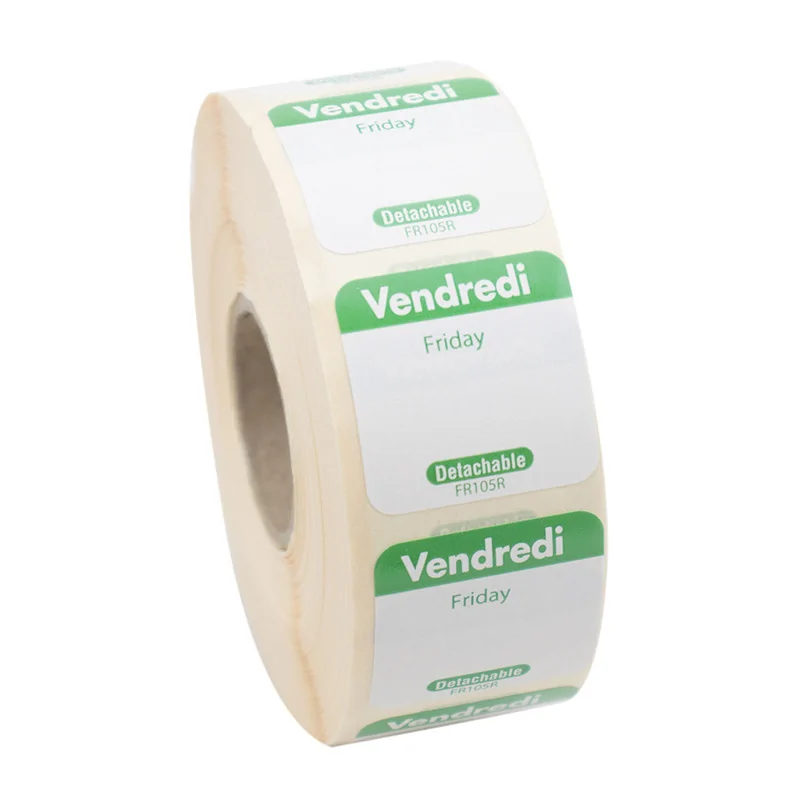rouleau de 1000 étiquettes dlc jour de la semaine autocollantes 2,5x2,5 cm vendredi vert