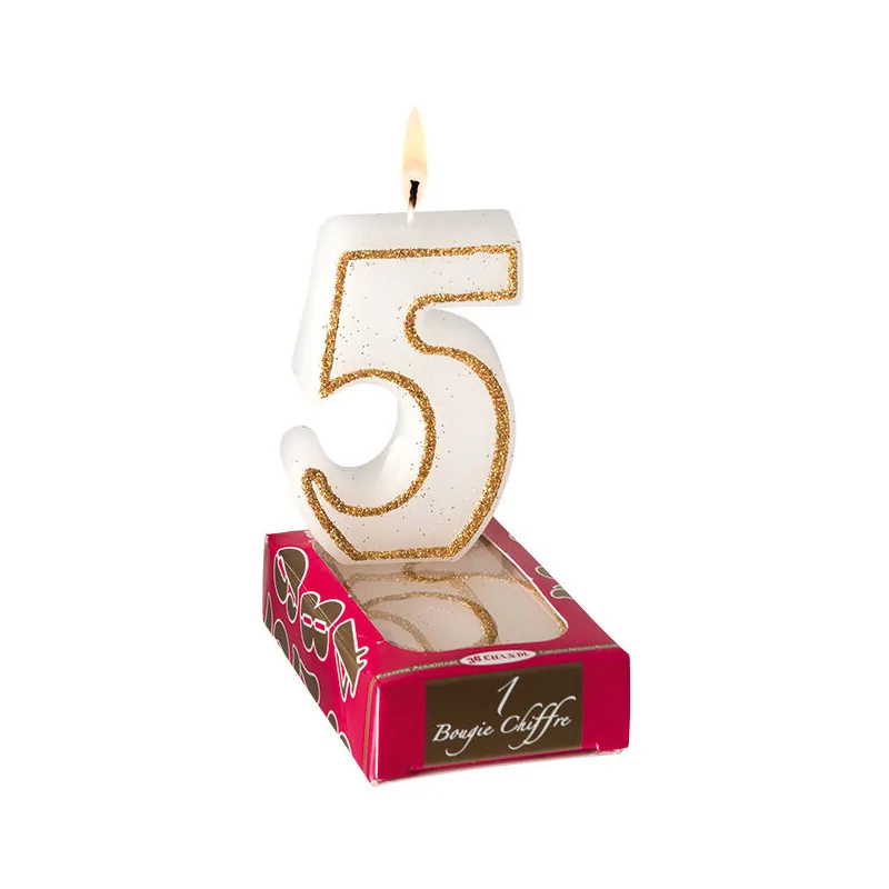 boîte de 12 (12 boîtes de 1) bougies chiffres blanches avec liseré or, n°0