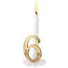 - Bougie blanche montée sur un support en plastique blanc sur lequel est fixé un chiffre doré