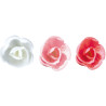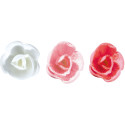 boîte de 60 décors en pain azyme, roses cristallisées assorties rouges, roses, blanches