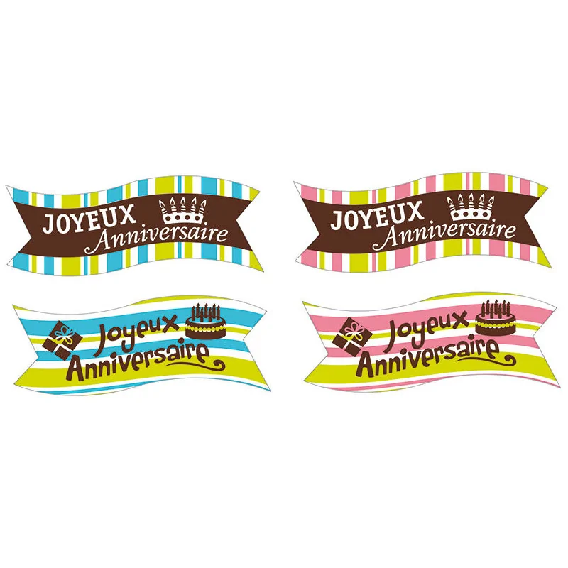 boîte de 24 décors en pain azyme banderole Joyeux Anniversaire 4 modèles assortis