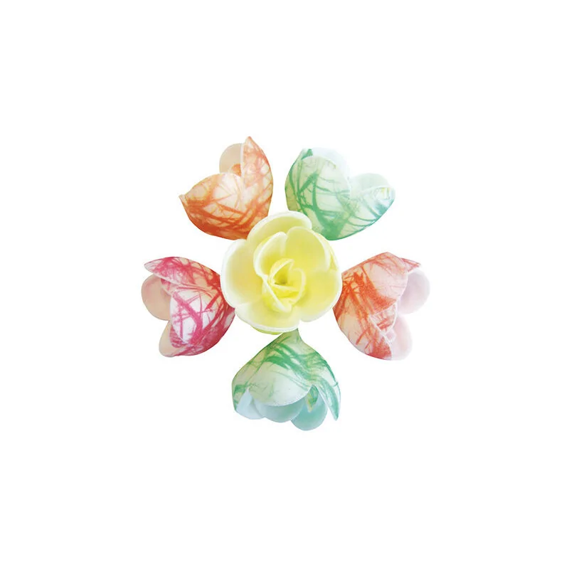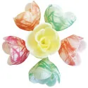 boîte de 72 décors en pain azyme, fleurs azyme pastel zébrées assorties ø 40 mm