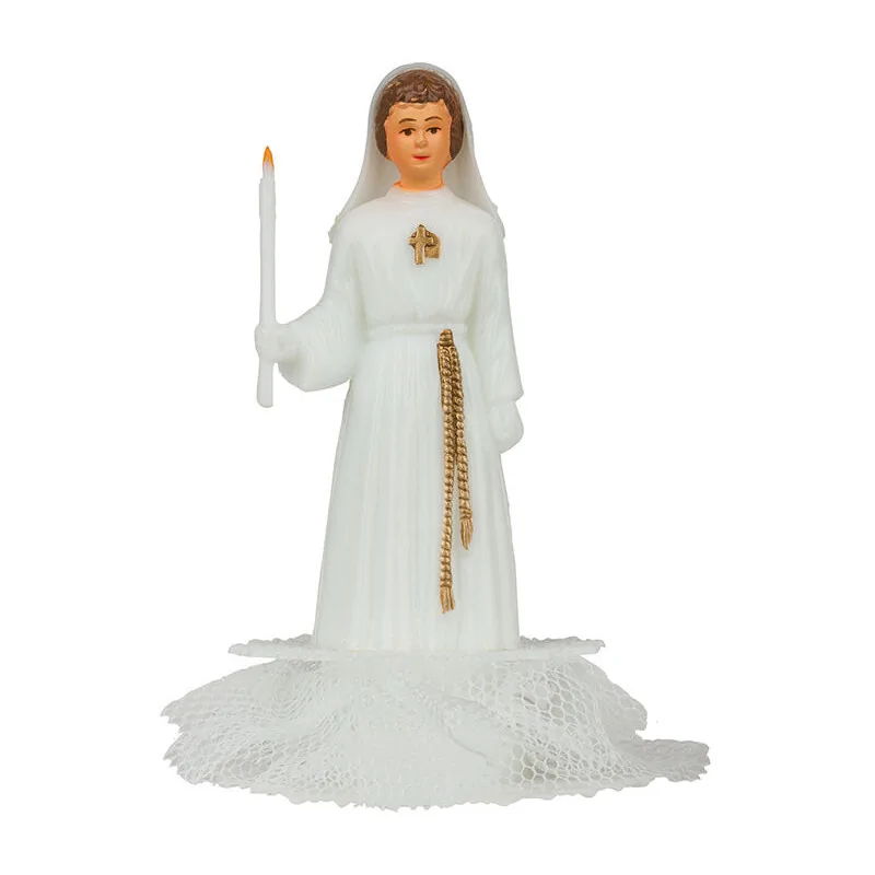 boîte de 24 sujets de communion, avec cierge, fille H12 cm