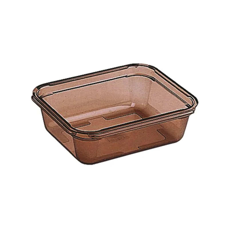 Matériau recyclable 100% : copolyester Adapté à la liaison froide, la congélation, la remise en température et au four micro-ondes Transparent : identification rapide du contenu Emboîtable à vide Couvercle en creux pour l\'empilabilité Conforme à la norme EN631-1 Forme étudiée pour un séchage rapide et un bon égouttage Epais et très robuste Coins arrondis ultra-résistants