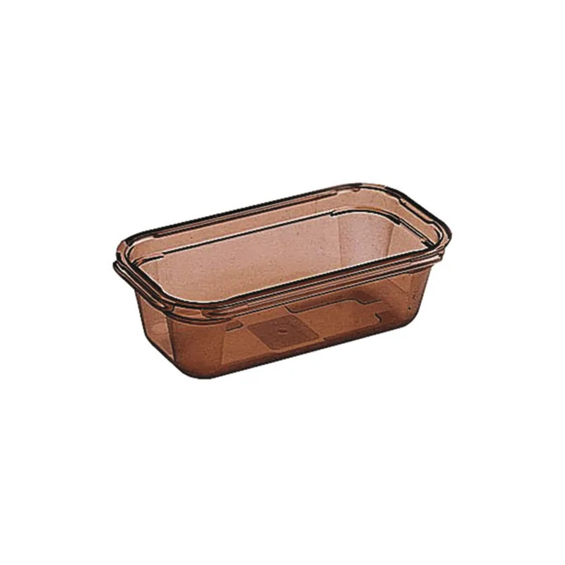 Matériau recyclable 100% : copolyester Adapté à la liaison froide, la congélation, la remise en température et au four micro-ondes Transparent : identification rapide du contenu Emboîtable à vide Couvercle en creux pour l\'empilabilité Conforme à la norme EN631-1 Forme étudiée pour un séchage rapide et un bon égouttage Epais et très robuste Coins arrondis ultra-résistants