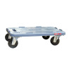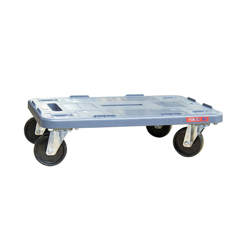 Plateau en polypropylène renforcé épaisseur 30mm, très résistant Dessus équipé de plots antidérapants Gerbage à vide des plateaux entre eux grâce aux empreintes pour les roues Facilite le positionnement des bacs format pâtissier Roues en nylon Ø100 mm, platines inox pour une utilisation en milieu alimentaire Forte capacité de charge Trou pour passage de sangle et portage