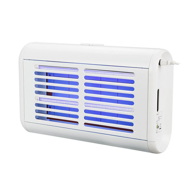 Structure aluminium revétu blanc, léger et résistant Economie d\'énergie de 55% en comparaison de lampes fluorescentes à ballast Fonctionnement avec plaques de glu Equipé de 4 tubes LED UV-A de 9W Hygiénique, aucun risque de projectionde résidus d\'insectes grillés. Le piège reste propre. Permet la capture de tous les insectesvolants, même les plus petits Comptage facile du nombre et variétés d\'insectes capturés Convient pour milieux secs A suspendre ou fixer au mur en drapeau Double face Grande surface d\'action : 200M² Sans bruit, sans odeur