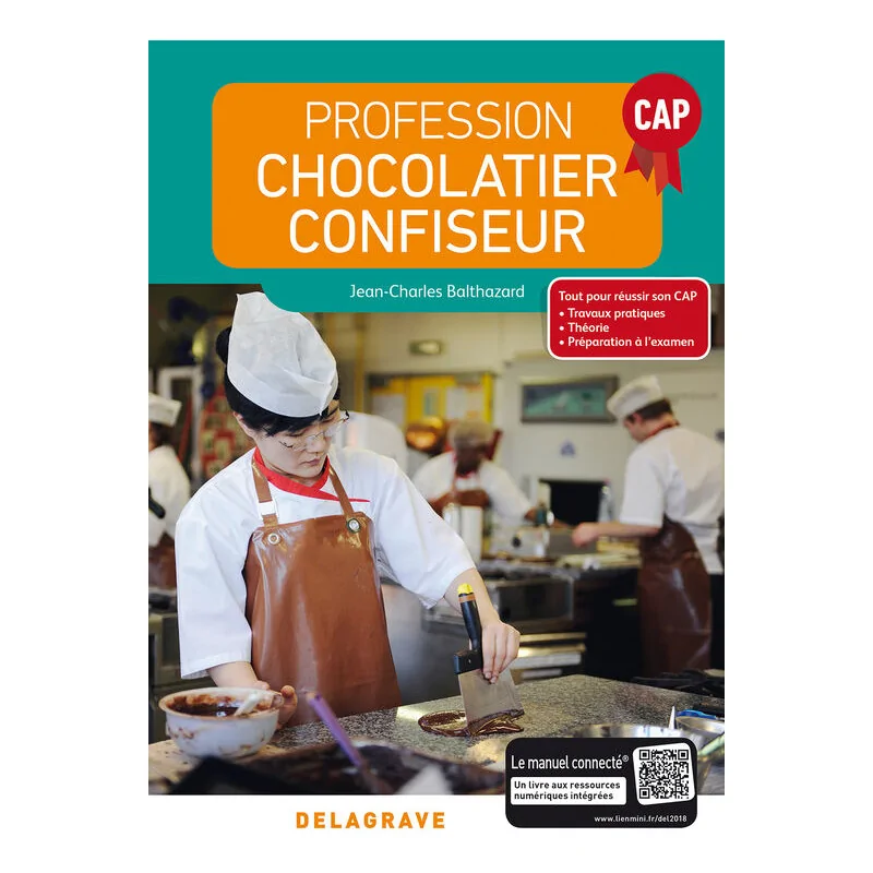 Livre professionnel Auteur : Jean-Charles Balthazard 287 pages Le seul ouvrage scolaire à destination des élèves et apprenants du CAP Chocolatier-Confiseur et à mettre entre les mains de tous les chocolatiers-confiseurs Tous les contenus théoriques (Technologie professionnelle, Technologie appliquée), toute la pratique professionnelle et une partie activités où l\'élève peut mettre en pratique ce qu\'il vient d\'apprendre