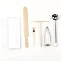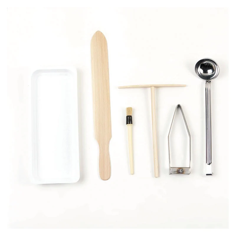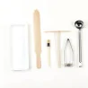 Accessoire pour crêpières Système breveté pour la réalisation de crêpes et galettes rondes et régulières Kit complet : étaleur inox + louche + râteau + spatule + pinceau