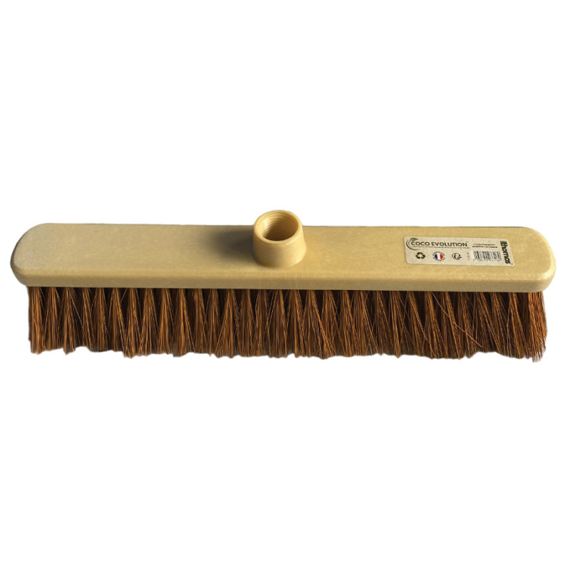 En polypropylène Balayage mixte intérieur extérieur, permet aussi de balayer au contact de l\'eau Garnissage en fibres issues du recyclage de bouteilles plastiques (PET) Les fibres PET ne s\'écrasent pas, les saletés ne s\'accrochent pas dans les fibres