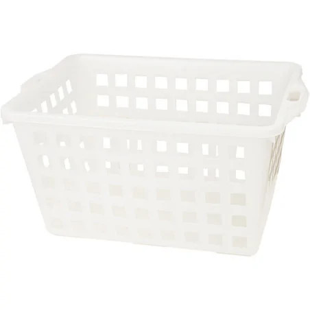 En polyéthylène très résistant Munie de deux poignées pour une manipulation facilitée Corbeille rectangulaire à fond plein avec côtés ajourés, adaptée pour le contact alimentaire
