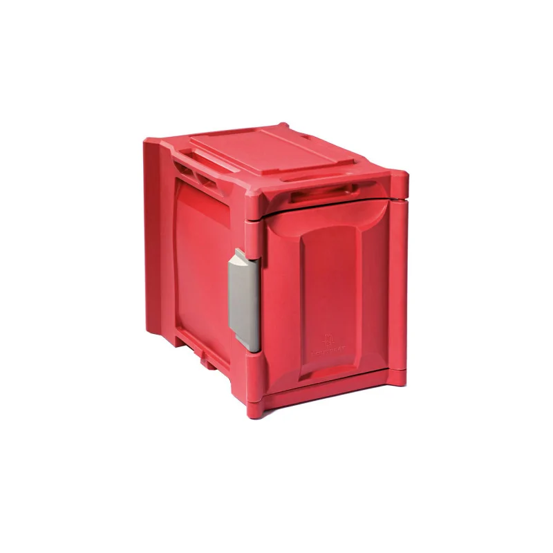 Conception en polyéthylène alimentaire Isolation efficace par mousse sans CFC Intérieur avec glissières monobloc, sans zone de rétention d\'eau - Glissières au pas de 36 mm Poignées encastrées ergonomiques Grand loqueteau de fermeture rapide 1 main Coins et bords renforcés - Côtés et dessus rigidifiés Patins anti-usure sur le dessous Formes étudiées pour un bon calage lors de l\'empilage Utilisation en température de -30°C à +85°C Porte, loqueteaux facilement démontables sans outil. Porte sans charnière Fermetures parfaitement étanches. Parfaite circulation de l\'air dans les enceintes Livré avec un jeu d\'étiquettes : rouge (liaison chaude) bleue (liaison froide) Compatibles avec le lavage au jet haute pression Certifié NF Hygiène Alimentaire