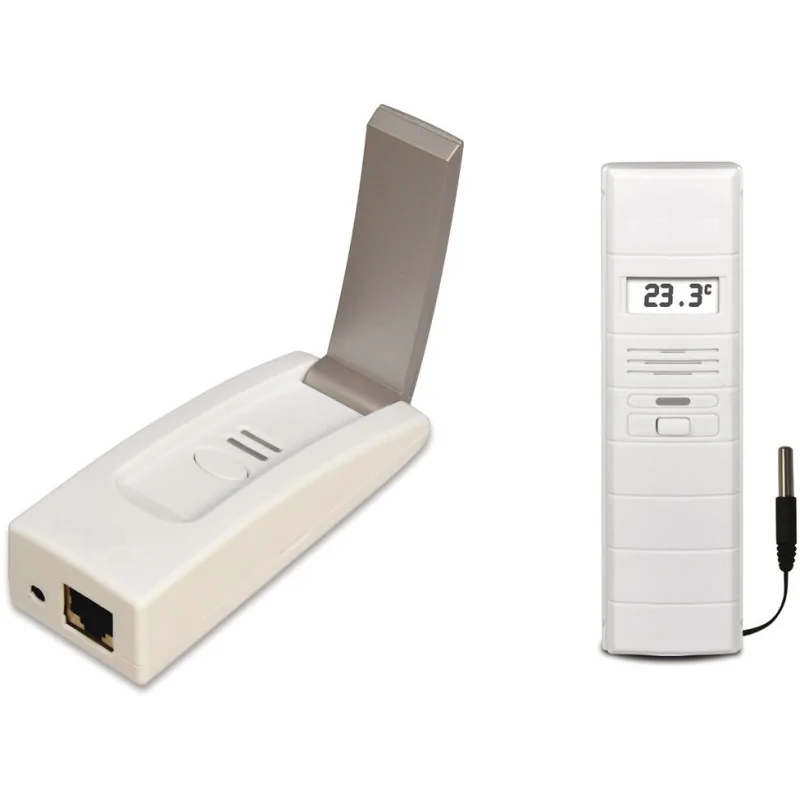 Kit composé d\'une passerelle internet avec un capteur Pro Permet de suivre à distance la température d\'un point donné Permet de recevoir les alertes sur un smartphone Possibilité d\'ajouter jusqu\'à 50 capteurs. Fonctions thermomètre et hygromètre ambiant Transmission via radio fréquence (868mhz) et internet Alerte, surveillance et enregistrement de température sur application mobile Graphique et transmission des données via mail (fichier csv) Usage : Stockage froid positif et négatif Précision du capteur +/-1°C (+/-5%) Précision de la sonde +/-0,5°C. Résolution 0,1°C Grande plage de mesure des températures : -40 °C à +60 °C (20 à 99 %) et -50 °C à +110 °C pour la sonde Intervalle de mesure 3,5 min Le KIT contient: 1 capteur (boitier + sonde filaire 1,5m + support) + 1 passerelle + 1 adaptateur alimentation 230V 20V + 1 cable réseau RJ45 Alimentation capteur par piles 2x1,5V AAA (non fournies)