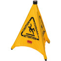 En nylon et polyéthylène Cône de sécurité mobile, avec avertissement multilingue Sol Glissant Modèle parapluie pour un déploiement en quelques secondes Replié, le cône se stocke dans un étui, pour un stockage facilité