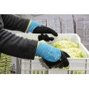 Gants enduits à base de nitrile Intérieur textile isolant. L 260mm Etanche en environnement humide Excellent grip adapté à la manipulation des surgelés Lavable en machine Performances garanties jusqu\'à 5 cycles de lavages à 60°C Conforme au règlement des EPI : UE 2016/425 : Catégorie II, à la norme générale des gants de protection EN 420/2003+AI:2009 (dextérité 5), à la norme de protection contre les risques mécaniques EN388:2016 (3222X) et de protection thermique contre le froid EN 511:2006 (02X) Agréé contact alimentaire