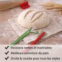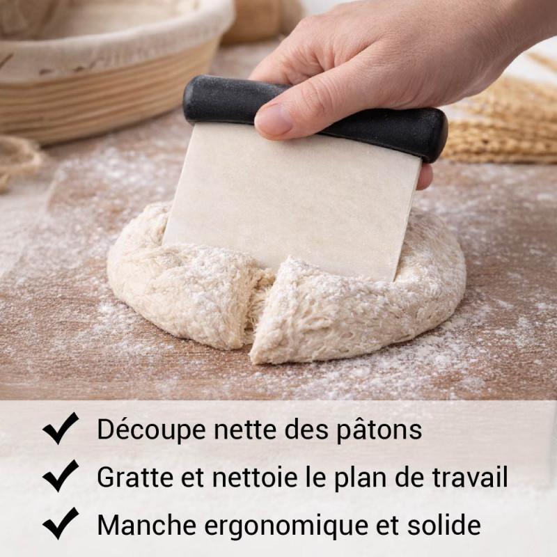 Réalisez facilement des baguettes maison parfaites comme un boulanger ! Kit complet avec plaque anti-adhérente, banneton, lames de boulanger, corne, coupe-pâte et pelle doseuse.