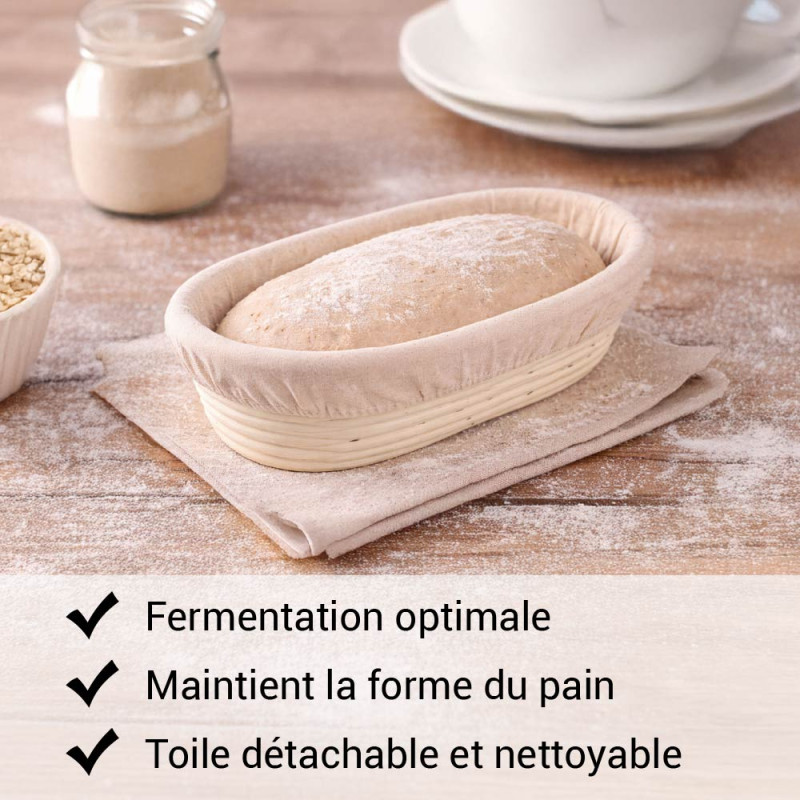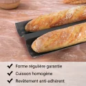 La plaque 2 baguettes anti-adhérente assure une forme parfaite et une cuisson homogène. Le banneton ovale maintient vos pâtons pendant la deuxième pousse et garantit des baguettes régulières, tandis que les lames de boulanger permettent de réaliser des incisions nettes ou décoratives pour une croûte parfaite.