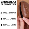 Avec ce kit œuf surprise, nous vous invitons à recréer chez vous l’émotion unique de la découverte. Faites fondre le chocolat au lait, moulez votre œuf, glissez-y la surprise, puis refermez-le délicatement avant le démoulage. Quelques gestes simples pour un résultat spectaculaire : un grand œuf brillant, prêt à être offert, caché dans le jardin ou ouvert avec impatience. La quantité de chocolat vous permet de réaliser jusqu’à 4 de ces œufs surprise.