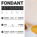 Mode d'emploi : Ramollir le fondant pâtissier blanc à 30-35°C avant utilisation, au micro-ondes, bain-marie, ou étuve.