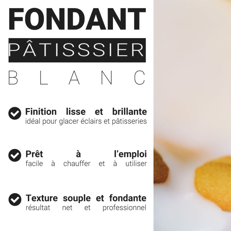 Fondant blanc pâtissier Patisdécor, pour le glaçage des éclairs, des religieuses, mille-feuilles...
