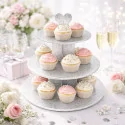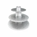 Présentoir Cupcakes 3 étages ronds argentés, parfait pour la présentation des petits gâteaux, tels que petits fours et cupcakes.