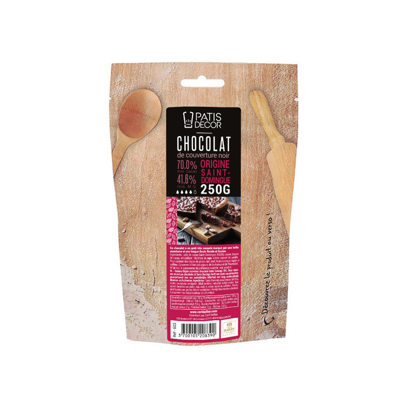 Chocolat de couverture noir Saint Domingue - 70% de cacao - 250g