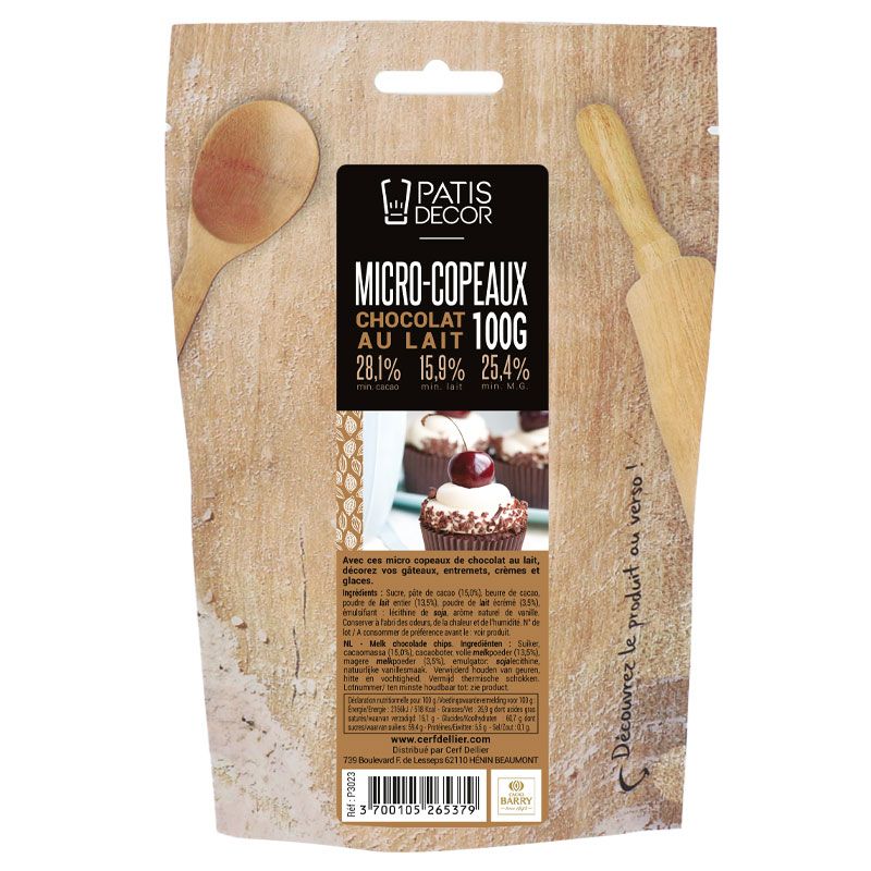 100 g de mini copeaux de chocolat au lait en petit conditionnement, pour garnir vos gâteaux, entremets, cupcakes merveilleux ou encore verrines, biscuits, glaces, crèmes