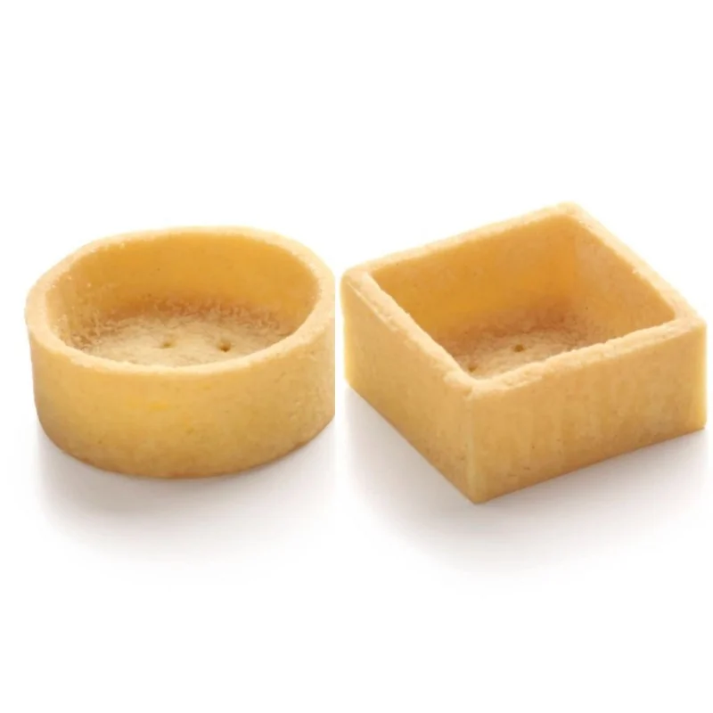 Assortiment de petites tartelettes en pâte sablée sucrée. Une recette raffinée, élaborée avec des œufs de poules élevées en plein air. Une texture croustillante qui conserve son croquant pendant plusieurs jours, même après garnissage. Un design résolument contemporain avec des angles droits et des bords lisses.