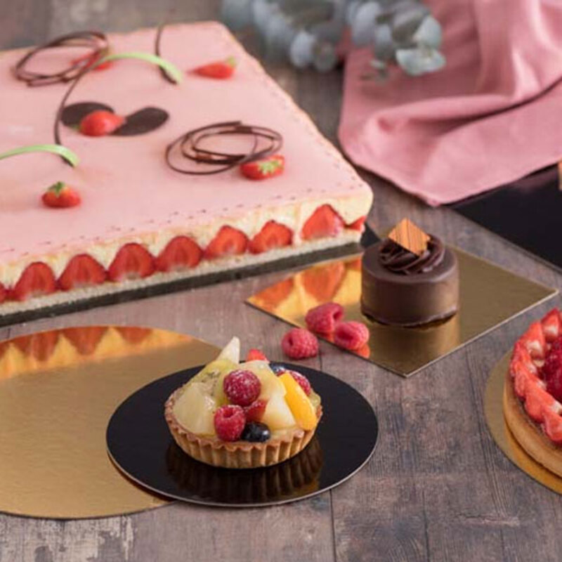 Le support en carton est indispensable pour le transport, le maintient et la présentation des gâteaux, entremets et pâtisseries.