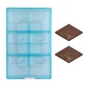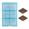 Moule pour tablette de chocolat, six empreintes carrés bonhommes de neige et l'inscription "Joyeux Noël" dans plusieurs langues.