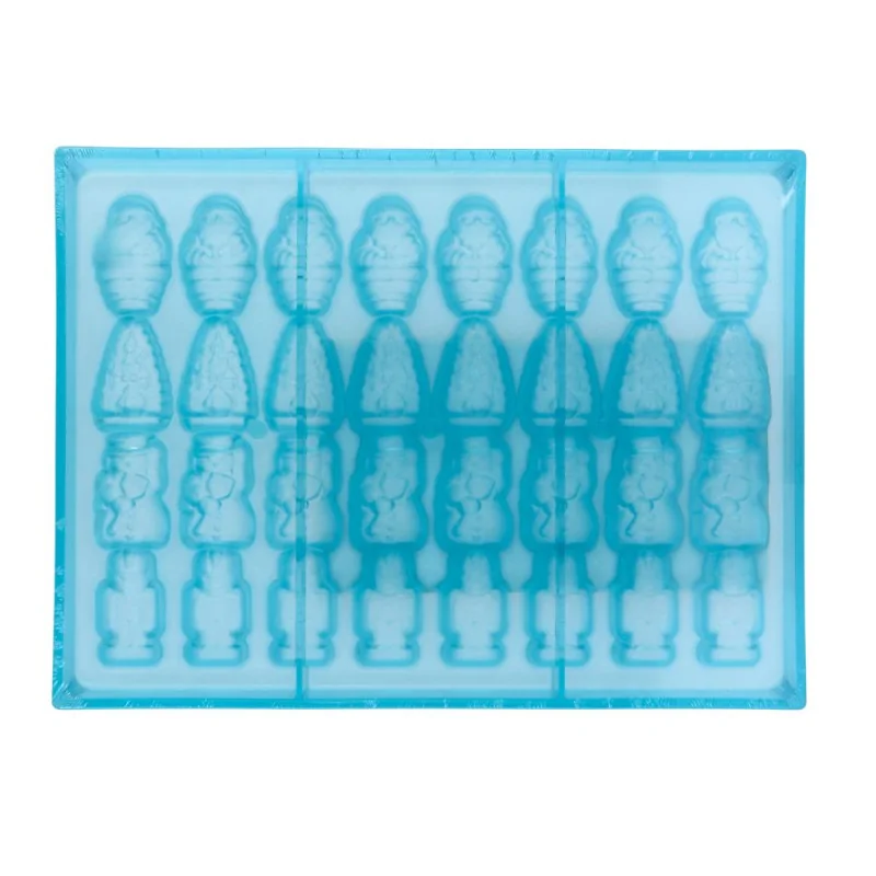 Plaque à chocolat simple permettant le moulage de jolis petits sujets de Noël en chocolat.