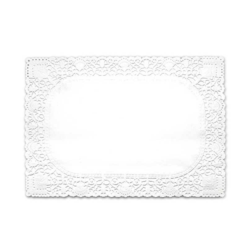 Dentelle pâtisserie rectangulaire en papier, extra-blanche, bords broderie anglaise.