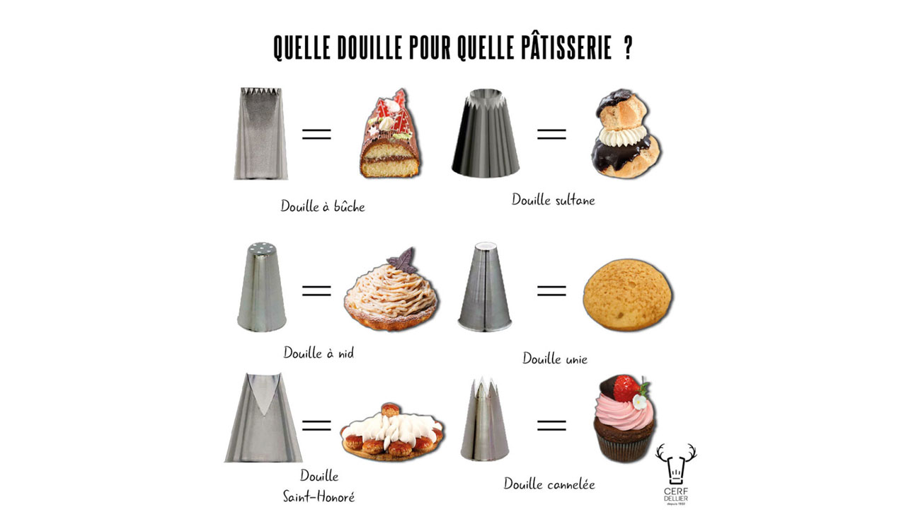 C'est tout à fait normal, car il existe beaucoup de modèles différents, chacun avec sa particularité. Nous allons donc ici vous indiquer quelle douille à pâtisserie utiliser.